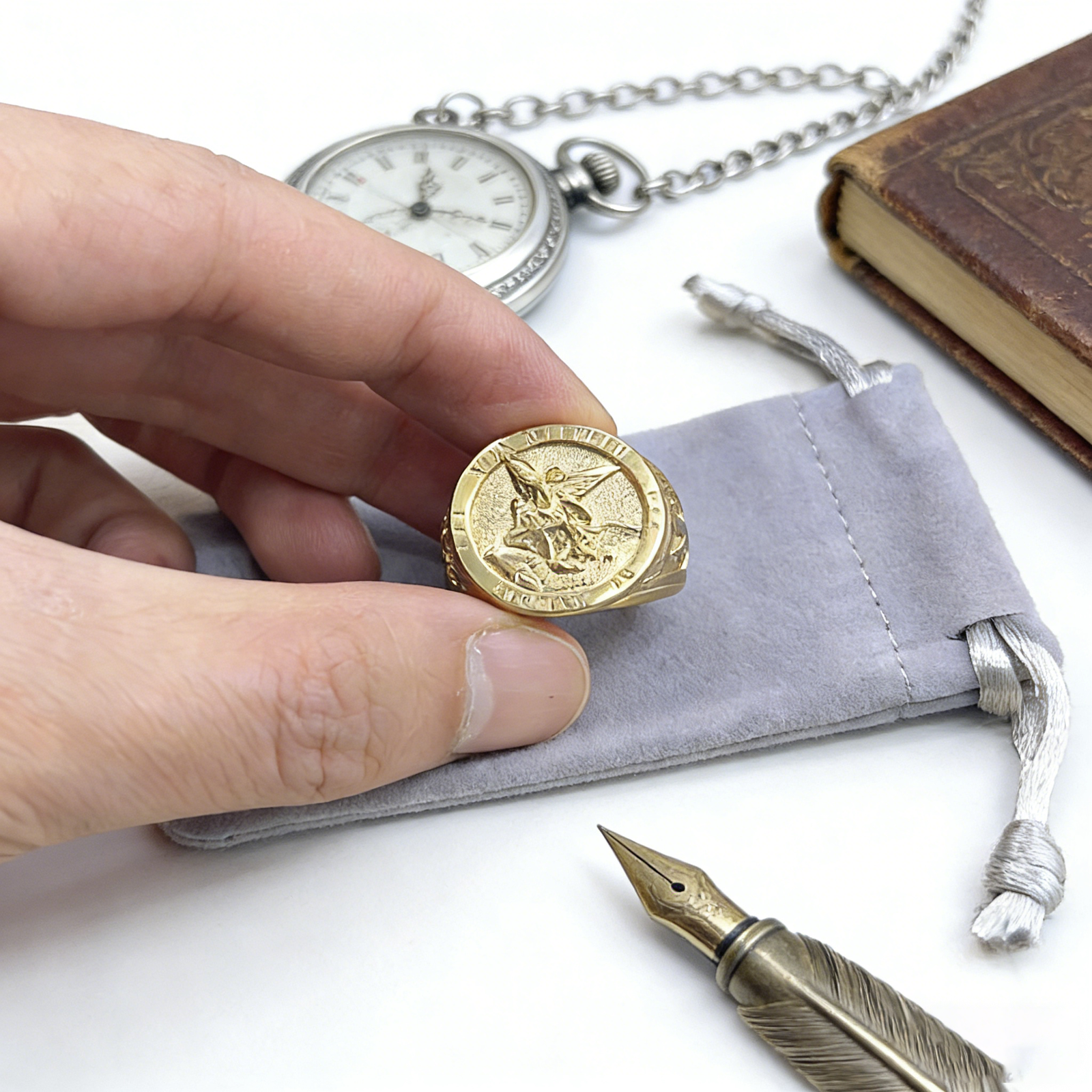 Angel Ring is a representative protective jewelry in Western religious culture, and this angel ring with Archangel Michael as the core is a highly recognized faith token among Christians worldwide, carrying sacred protective meaning and spiritual sustenance. Archangel Michael is the chief angel in Catholicism and Christianity, known as the “Guardian Angel”, symbolizing justice, courage, blessing and strength, a sacred symbol to resist evil, protect the soul and bring peace, which is the core reason why this angel ring is popular in the European and American religious jewelry market.