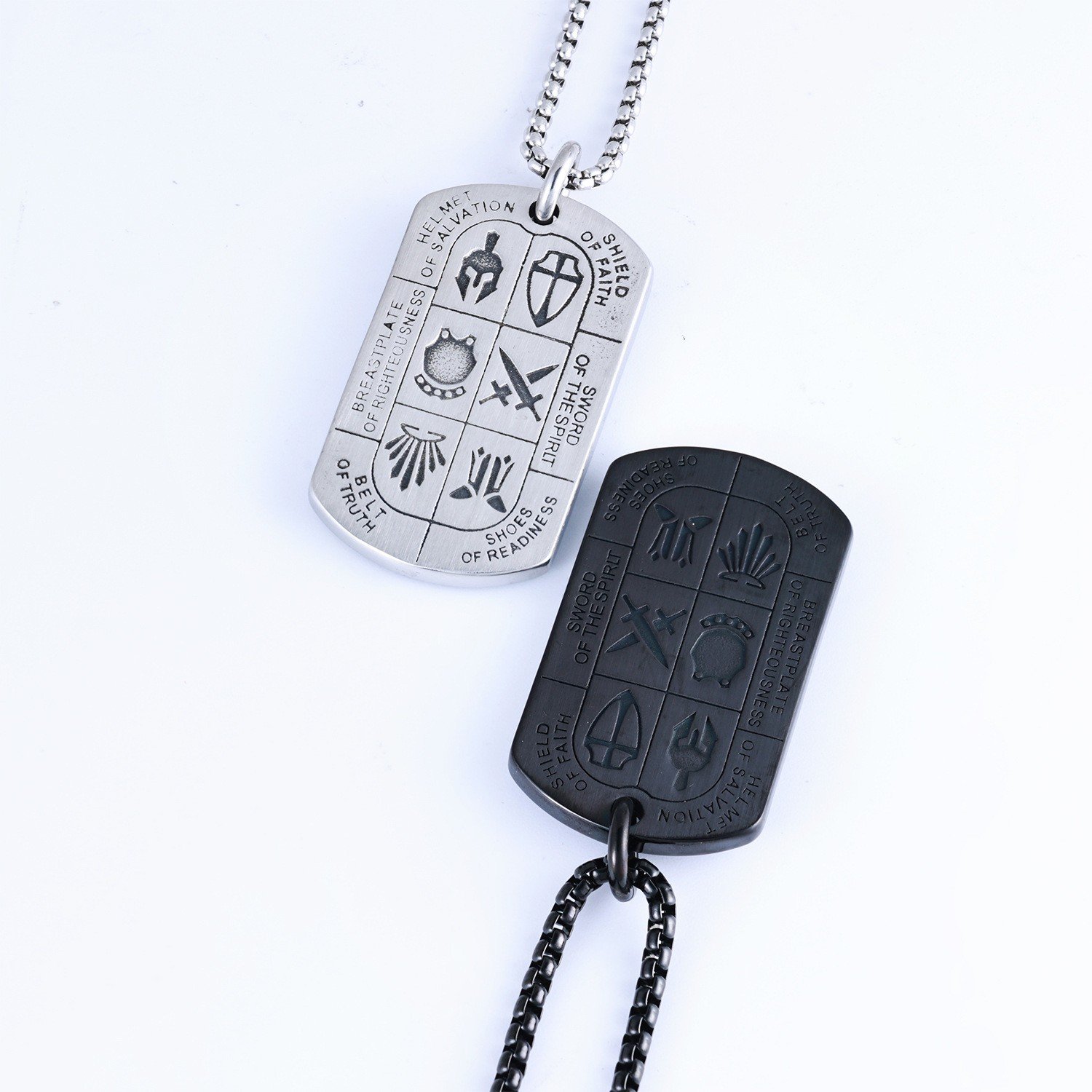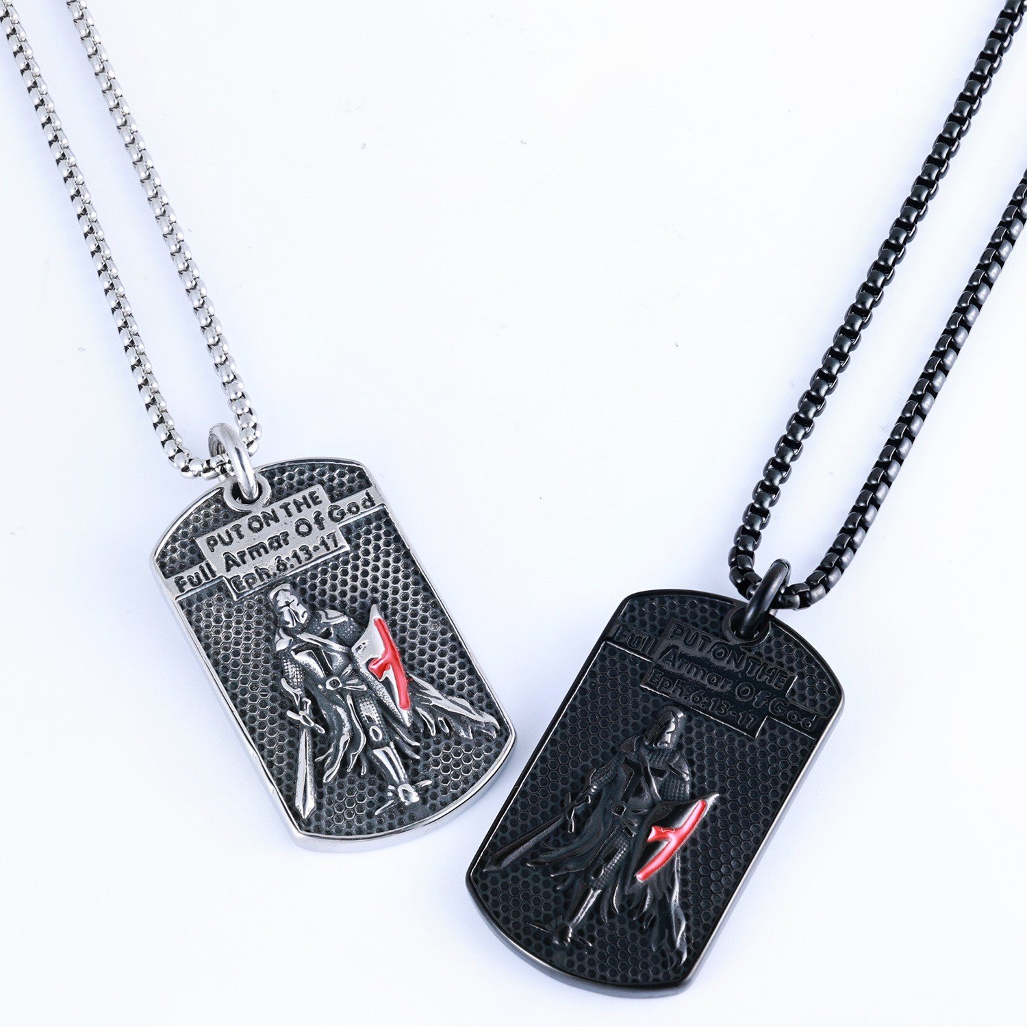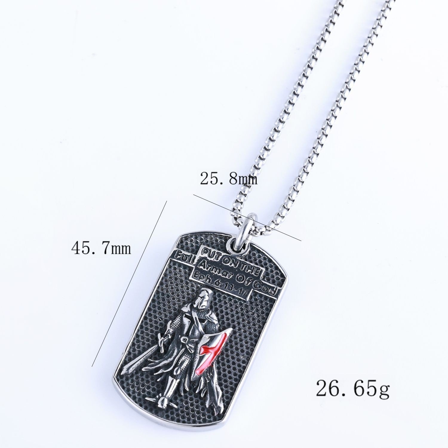 As a cross-border hot-selling accessory in Europe and America, the knight dog tag pendant fits various styling scenes. It highlights masculine charm and tough aura for men, and creates sweet cool street style & vintage American style for women, easily upgrading outfit layers. Made of durable stainless steel or premium alloy, it is corrosion-resistant, anti-fade and long-lasting bright.