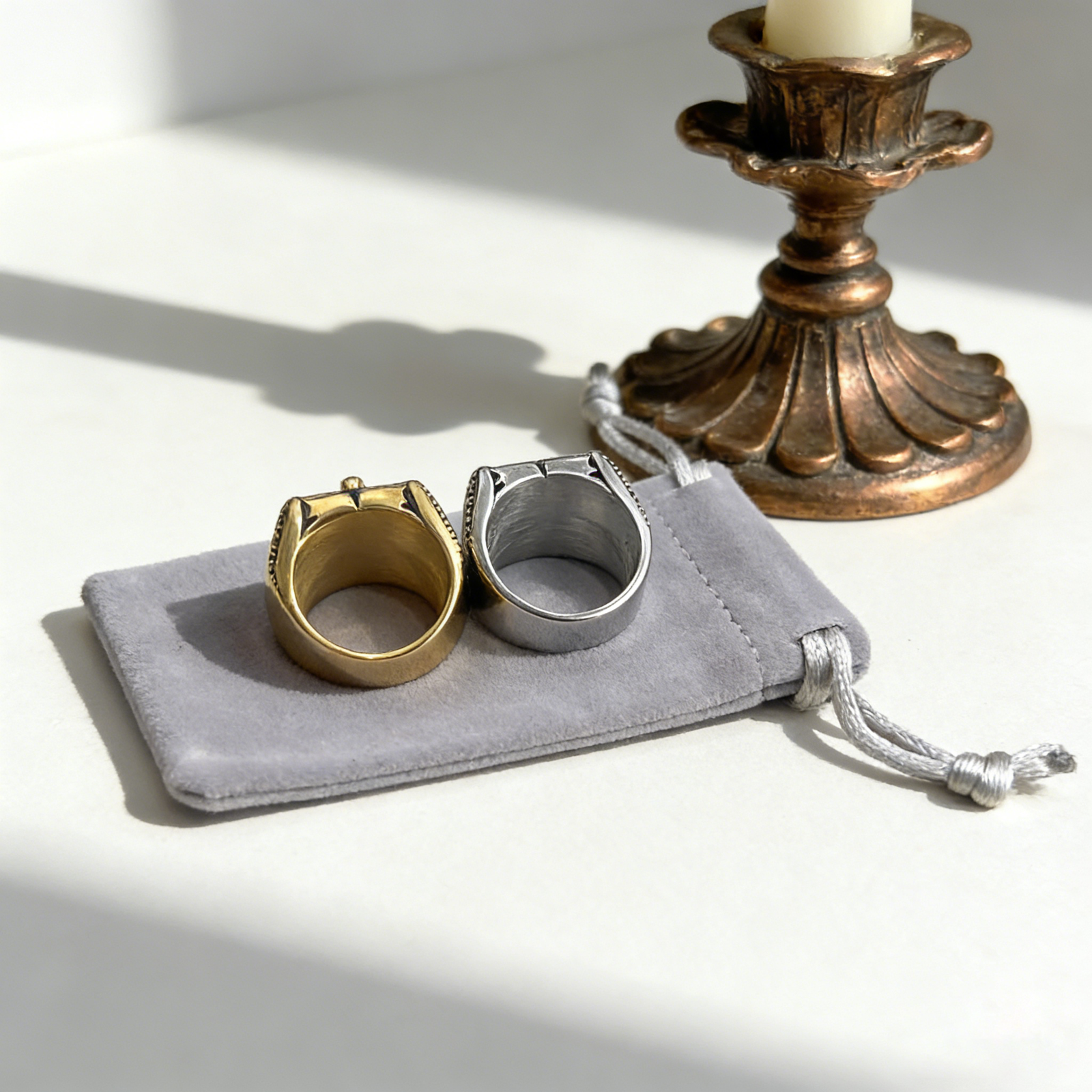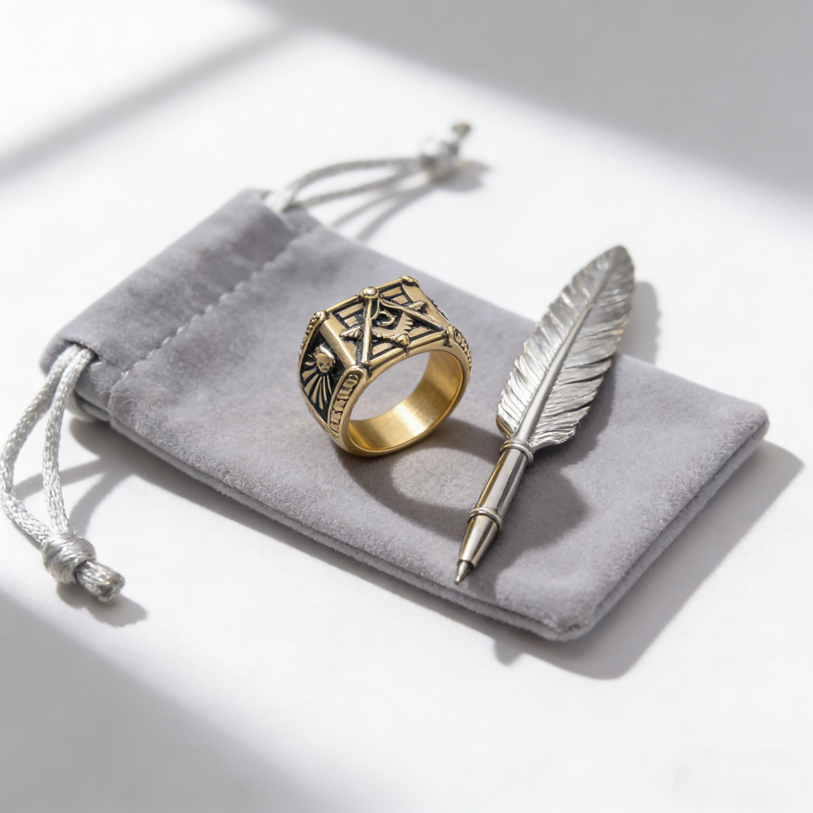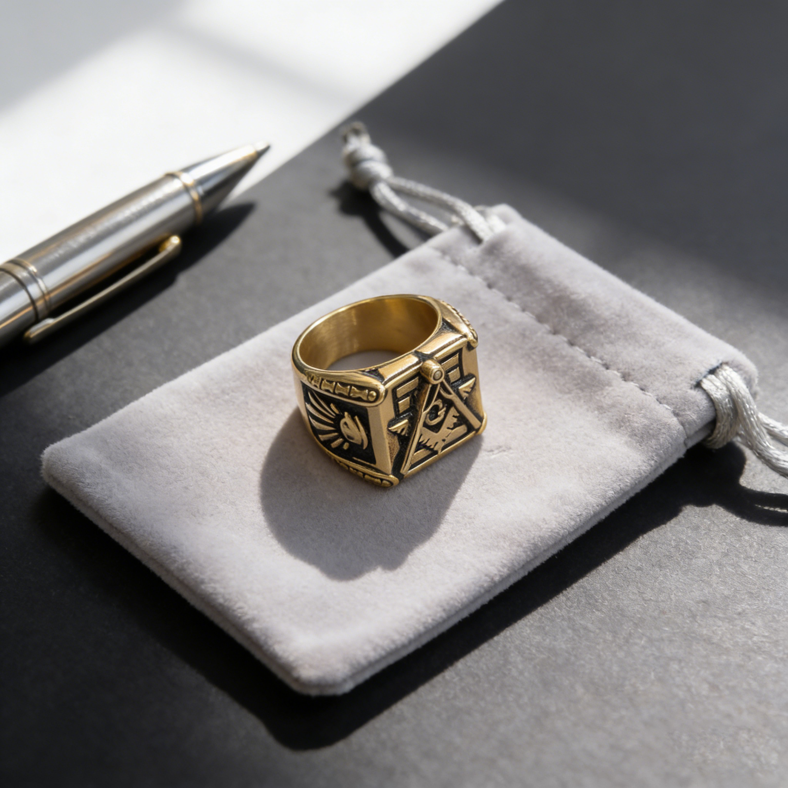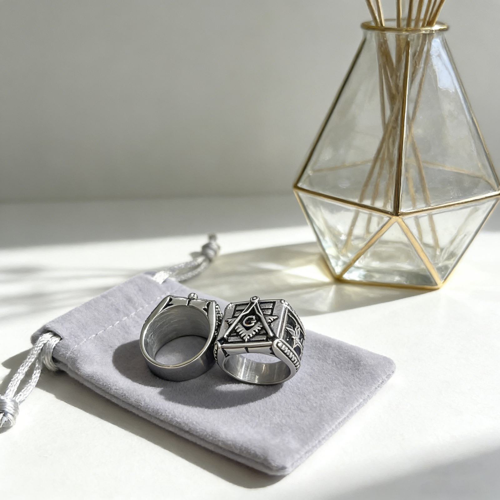 This men’s ring takes AJ design concept as the tone, deeply integrates Masonic core religious totems, with fine and three-dimensional carvings on the ring surface, clear and deep totem lines, tough and grand overall shape, perfectly fitting the lines of male hands, instantly enhancing the aura when worn, highlighting the calm and domineering male charm. Whether it’s daily commute, street fashion, friend gatherings, riding trips or workplace wearing, this men’s ring can adapt to a variety of styles, becoming the finishing touch in dressing, saying goodbye to monotony and highlighting the wearer’s unique taste. Forged with high-spec 316 stainless steel, compared with ordinary alloy men’s rings, this men’s ring has strong corrosion resistance, sweat resistance and oxidation resistance, no fading, rust or deformation problems in daily hand washing, sweating or bumps, and will not irritate the skin and cause allergies. The edge of the ring is polished smoothly through multiple layers, round and skin-friendly, comfortable for long-term wearing, completely solving the pain points of traditional men’s rings such as easy loss, difficult maintenance and sensitization, balancing appearance and practicality.