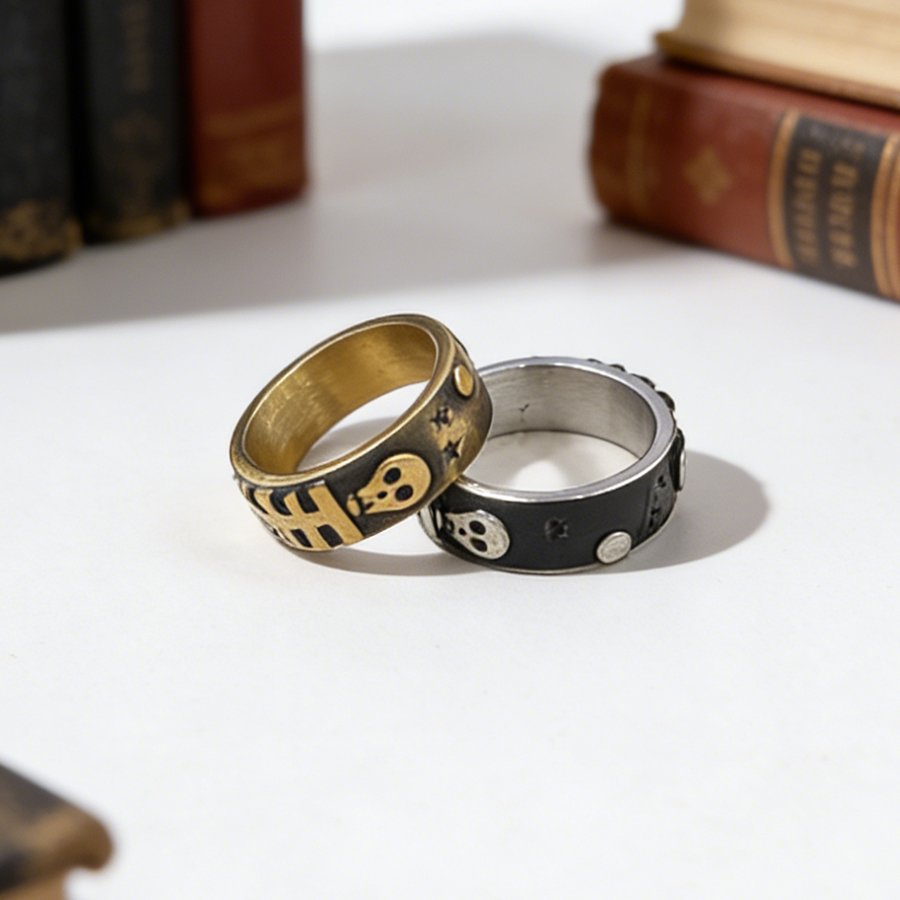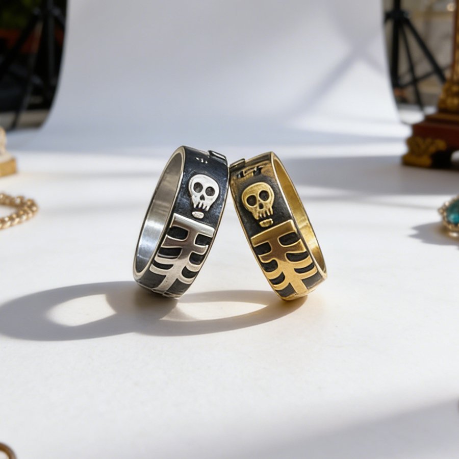 Skull Ring is an iconic accessory of hip hop culture. This plain band skull ring perfectly integrates the rebellious personality of hip hop with the simple texture of the plain band, combined with the user-friendly design of two available colors, becoming a blockbuster item with both appearance and practicality in the cross-border hip hop jewelry market. The skull element has profound connotations in hip hop culture. It is not only a symbol of breaking conventions and showing self, but also carries the spiritual core of tenacity, fearlessness and freedom, echoing the essence of hip hop culture that originates from the streets and dares to express. Just as the core charm of hip hop jewelry lies in “being undefined”, the skull ring has also become an important carrier for trendsetters to express their personality and attitude, ranking high in hot searches in the European and American street trend circle all year round, and is deeply sought after by hip hop enthusiasts, street hipsters and young men.